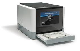 The 10X Genomics Chromium Controller instrument is designed to rapidly automate the capture of thousands of single cells or DNA fragments, combining them with reagents in emulsion droplets to perform a variety of assays.